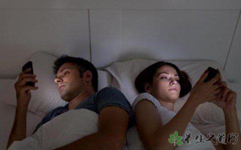 很多低頭族在晚上睡覺前還會玩手機,這個時候人們一般會將房間的燈關掉然后躺在床上刷微博或者聊天,專家提醒,經常這樣做會讓眼睛一直處于緊繃狀態,眼睛得不到休息就會引起后續不良的反應,近視以及干眼癥等眼科疾病都會纏上你。