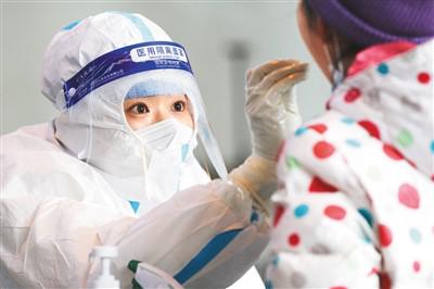圖為11月15日,在黑龍江省哈爾濱市香坊區(qū)安樂街道理工大學(xué)核酸檢測(cè)點(diǎn),醫(yī)務(wù)人員進(jìn)行核酸采樣。
