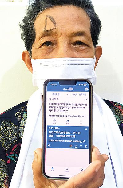 5月19日,柬埔寨波羅勉省白內障患者用翻譯軟件感謝中國醫療隊。