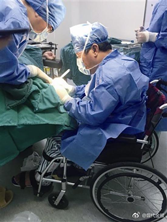 戴春山為何會坐著輪椅給患者動手術?事情要從去年11月28日說起。當天,他騎自行車不幸被電瓶車撞倒,左腳踝關節粉碎性骨折,情況嚴重,當天立即進行了手術。
