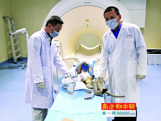但病毒是否會(huì)對(duì)人體有毒副作用?在2014年成果公布后,團(tuán)隊(duì)緊鑼密鼓挑選了“最接近人類”的非人靈長(zhǎng)類動(dòng)物食蟹猴進(jìn)行驗(yàn)證。團(tuán)隊(duì)成員、中山大學(xué)副教授胡駿在肇慶找到了合適的實(shí)驗(yàn)猴廠,這里既能給猴子做B超,還能做CT、核磁共振(M R I),“廣州醫(yī)院也有核磁共振,但猴子去做肯定不方便。”