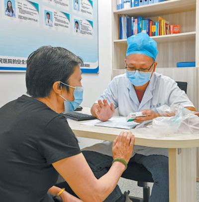 在廣東省深圳市羅湖區(qū)翠竹街道社康中心藥師門診,一名慢性病患者正在向藥師咨詢有關用藥事宜。