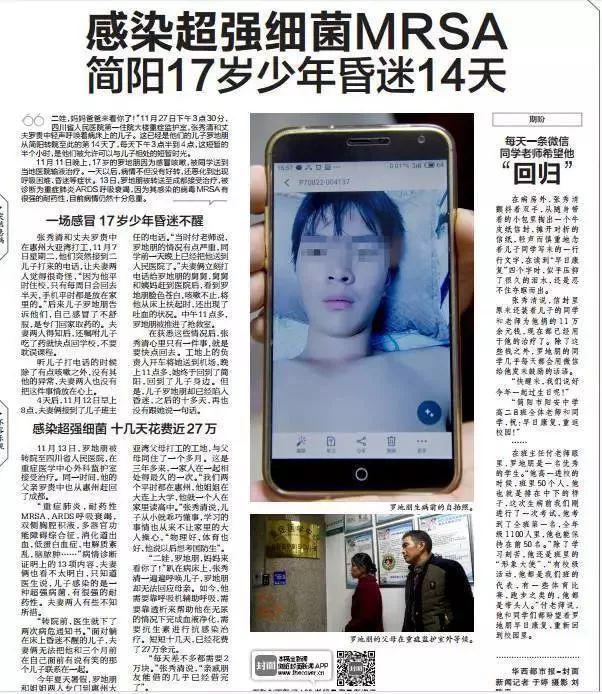 就在去年11月11日,四川一名17歲男孩也感染了MRSA。