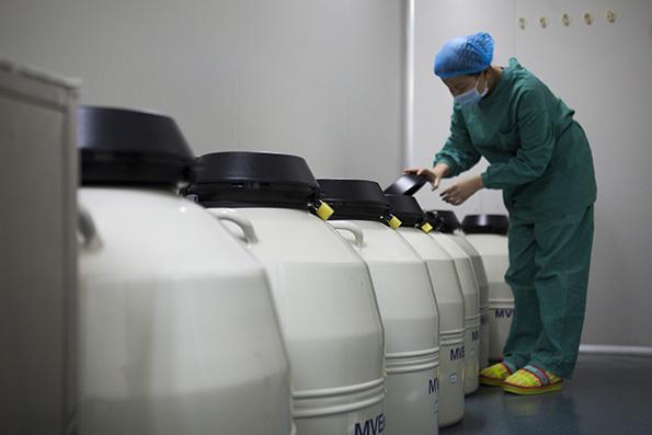 工作人員在整理液氮罐,胚胎存放在液氮罐里冷凍。視覺中國資料圖