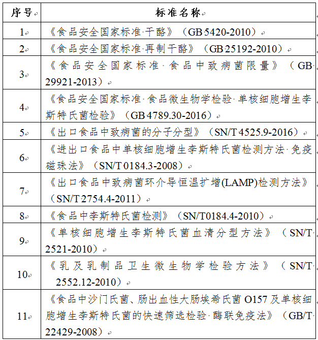 我國(guó)制定的單增李斯特菌相關(guān)安全標(biāo)準(zhǔn)及相關(guān)法規(guī)