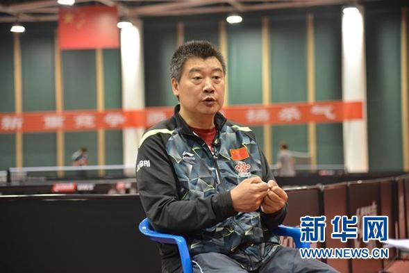中國(guó)女子乒乓球隊(duì)教練李隼接受新華社記者采訪。新華網(wǎng)發(fā)彭嘉靖攝