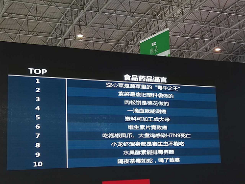 中山大學傳播與設計學院大數據傳播實驗室聯合騰訊較真發布《食品謠言治理報告》,該實驗室副主任何凌南介紹了2017年十大食藥謠言榜單,其中前5名如下: