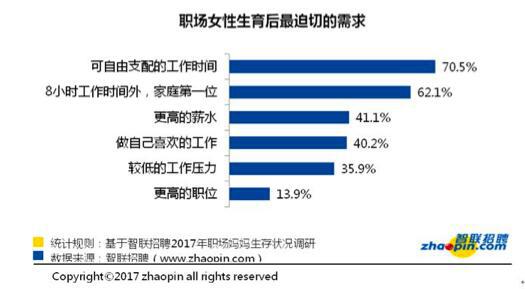 調查也確實反映出職場媽媽們的擇業觀,目前正在休產假的王女士剛剛生完小孩2個月,不過她也在重新考慮是否換工作。“我之前的工作需要經常出差,現在有了小孩,肯定要花更多時間在家里。”她說,如果不能協調,自己也只有被迫換工作。