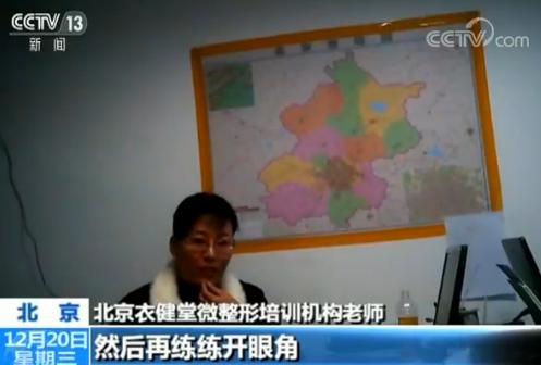 北京衣健堂微整形培訓機構在北京豐臺區紅旗渠大廈七樓開班,教室和一個餐飲公司后廚相連,遍布油煙。自稱是老師的兩個人接待了記者。老師說,在他們這里可以速成學會半永久、瘦臉針、去皺、割雙眼皮、隆鼻等數十項整形技術。