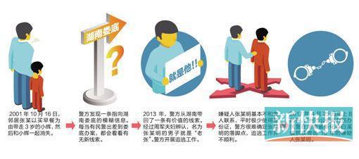 終于,在今年4月25日晚上8時(shí)許,廣州市公安局打拐辦民警根據(jù)可靠線索,在湖南省新化縣白溪鎮(zhèn)抓獲潛逃16年的嫌疑人張某明。