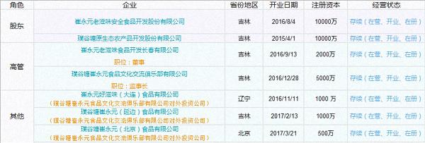 璞谷塘俱樂部對外投資了2016年11月11日注冊的崔永元好滋味(大連)食品有限公司、2017年2月13日注冊的璞谷塘崔永元(延邊)食品有限公司和2017年2月13日注冊的璞谷塘崔永元(北京)食品有限公司。 此外,崔永元還是崔永元老滋味安全食品開發股份有限公司的股東之一。該公司對外投資了崔永元老滋味食品開發長春有限公司。