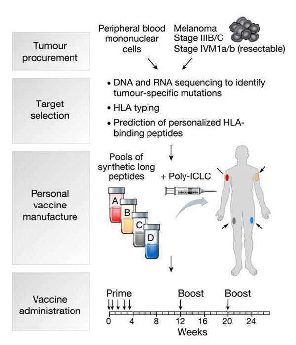研究人員在對患者腫瘤細胞和正常細胞進行深度測序的基礎上,找出腫瘤細胞中獨有的突變基因,將這些基因制成了最終的疫苗。