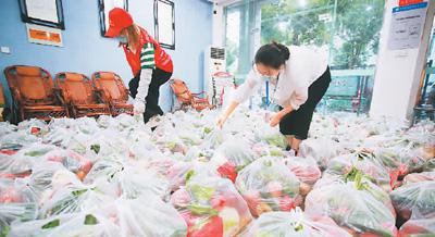 新冠肺炎疫情發(fā)生以來,江蘇省揚州市廣陵區(qū)湯汪鄉(xiāng)杉灣花園社區(qū)組織志愿者為居民配送蔬菜,解決了疫情防控期間居民購買蔬菜困難的問題。