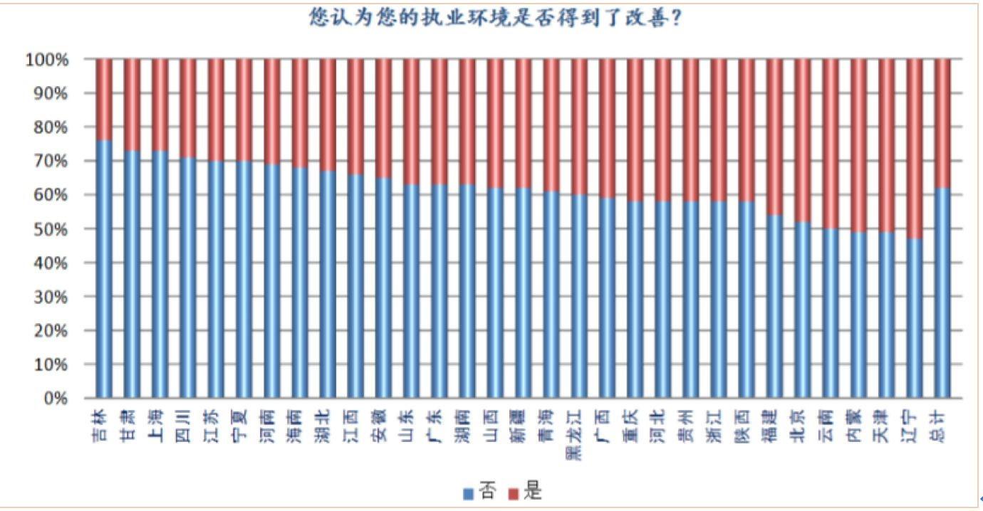 此份白皮書涵蓋了醫師執業環境、醫患關系、醫師收入、工作時間與醫師休假等方面。健識君注意到,與2015年發布的白皮書相比,此次調查顯示醫生與媒體關系得到明顯改善,然而對于執業環境,仍有超過半數的醫生表示感受并不明顯。