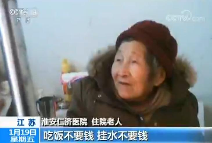 淮安仁濟(jì)醫(yī)院住院老人:吃飯不要錢,掛水不要錢,就交100塊錢。