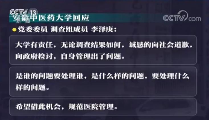 接下來(lái)看上面安徽中醫(yī)藥大學(xué)相關(guān)的調(diào)查組成員,大學(xué)有責(zé)任,無(wú)論調(diào)查結(jié)果如何誠(chéng)懇的向社會(huì)道歉,這個(gè)先道歉了,跟醫(yī)院的說(shuō)法其實(shí)是態(tài)度起碼就是不一樣的。