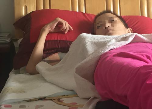 近日,岳陽市中醫(yī)院,謝雨夢躺在病床上,她右側(cè)乳房上巨大的腫瘤有皮球大小,不得不用白毛巾蓋住。