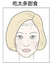 長(zhǎng)痘痘、額頭皺紋——甜食吃太多