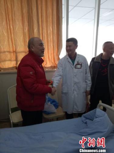 病房里,李先生緊緊握住醫生的手。(圖片來源:中新網)