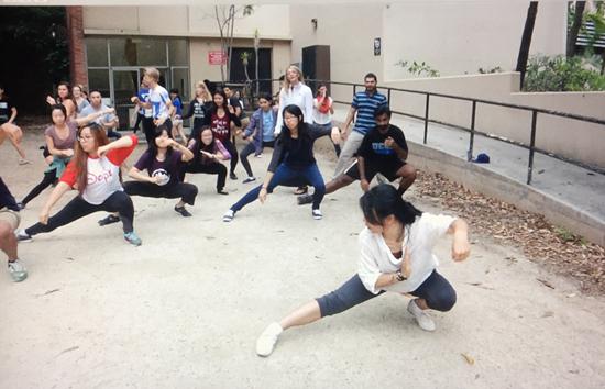 東西醫(yī)學(xué)中心面向全球的UCLA 暑期結(jié)合醫(yī)學(xué)課程上,趙靜醫(yī)生教授太極。Cherry Zeng Ma/供圖