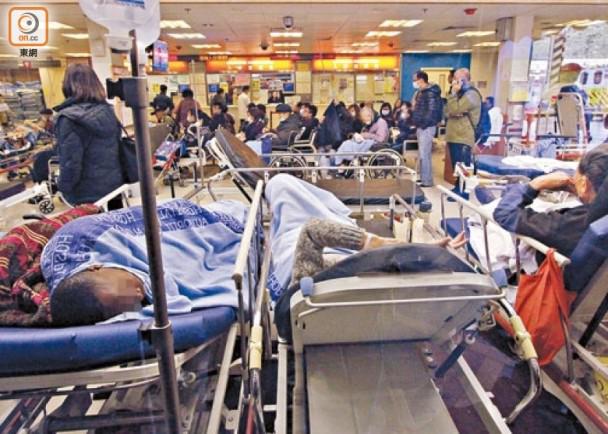 流感肆虐,公立急癥醫院有許多病人求診。(圖片來源:香港東網)