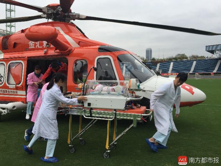 原標題:病重!未足月男嬰躺保溫箱保命乘直升機轉運至廣州救治