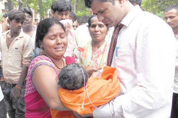 12 日,一名嬰兒在BRD醫院死亡后,親人們失聲痛哭。
