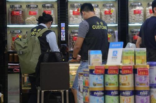 海關(guān)人員到彌敦道一間藥房調(diào)查。香港《大公報(bào)》記者周慶邦攝
