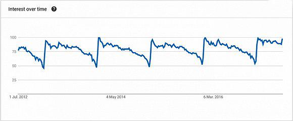 谷歌趨勢顯示的“減肥”關鍵詞搜索數據圖