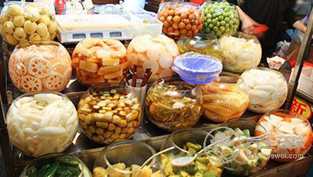 廣西特色小吃“酸嘢”,選用新鮮包菜、白蘿卜、木瓜、長豆角,放點糖、醋、姜制成。廣西還流傳著患了輕微腸胃病,喝上一碗“腌酸汁”就可痊愈的說法。此外,廣西人獨特的腌酸方法(先加醋而非傳統的先加鹽腌制法)可抑制細菌產生,能有效減少維生素C流失,并使果蔬中的礦物質易于吸收,其中的醋酸還能助消化,對腸胃健康有很大好處。