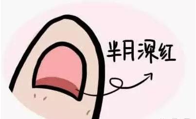 指甲上的半月深紅是心臟病的征兆,如果淡紅色多是貧血導(dǎo)致的。此時要去醫(yī)院確診,在食譜中增加含鐵的食物,如大豆、牛肉、菠菜、葡萄干等可預(yù)防貧血。