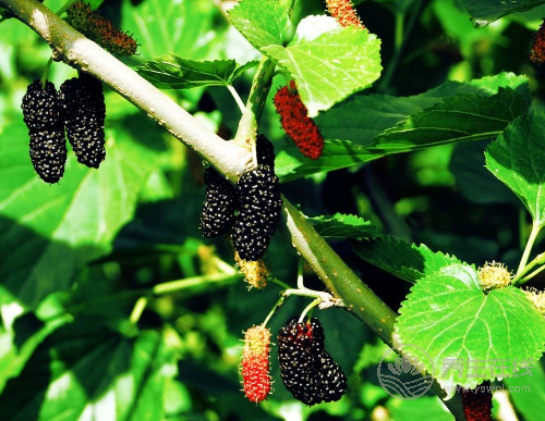不同的PH環境中花青素在呈現出不同的顏色,桑葚在未成熟時是青色,在成熟之后呈紫紅色或紫黑色,成熟之后的桑葚中也含有大量的花青素。