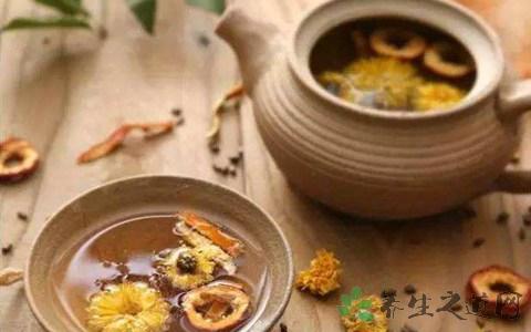 菊花50克,加水20毫升,稍煮后保溫30分鐘,過濾后加入適量蜂蜜,攪勻之后飲用。具有養肝明目、生津止渴、清心健腦、潤腸等作用。