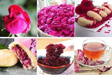 在烹飪過程中加入玫瑰花瓣,每當你品嘗到玫瑰花餡的湯圓,餅干,涼粉等菜肴時,好吃的同時,更是滿滿的浪漫氣息。讓花香彌漫在玫瑰奶茶、玫瑰酒釀年糕等美味中。