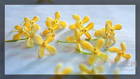 在制作食物時,通常我們用的是干桂花。鑒別干桂花好不好,一是看干桂花顏色和大小,花色比較均勻、大小比較均勻的為佳;帶有葉子沙土等雜質、花朵不完整者次之。二是以干桂花茶直接聞香,正品新產干桂花氣味清香,聞之心曠神怡;陳貨或者存儲不當的貨品質差,聞之無味可能是陳貨或者其他桂花品種,有異味懷疑是否霉變。再有就是取少許干桂花,以泡茶的方式鑒別,正品應為水變色不明顯但是氣味長久不散;如泡后水變色較快可能為染色,香味少可能是添加香精,若沖泡出的桂花茶有明顯酸澀味說明桂花被硫磺熏過。