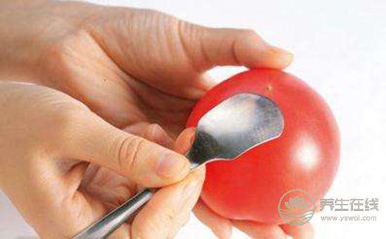 用勺子刮勺子的選擇比較重要,勺子的邊緣不能太薄,也不能太厚,用鐵皮勺子刮,西紅柿很容易破,如果用喝湯的白瓷勺子,勺子邊緣太圓滑,很費(fèi)力。所以用不銹鋼勺子和塑料勺子都是不錯(cuò)的選擇。在刮的時(shí)候,力度要掌握好,刮得太輕,西紅柿的皮和肉起不到分離的作用,如果力度太大,把皮刮破,如果力道剛好就可以順利把皮撕下來。