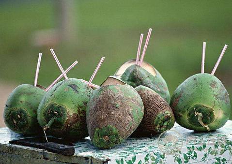 椰子具有滋補、清暑解渴的功效,是解暑生津之佳品。椰子汁清如水,且相當清甜、晶瑩透亮,清涼解渴。一個好椰子,大約有兩玻璃杯的水。