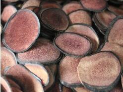 將處理好的鹿茸的封口時的結痂,然后把50度(v/v)以上的白酒灌入其中,用毛巾或濕布把整個茸裹嚴放置一夜,次日鹿茸變軟后,用刀具橫切,茸片切的越薄越好,擺放在紙上,晾干后防潮濕,保管備用。