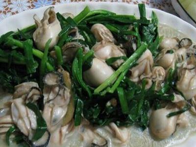 原料:韭菜100克、鮮蠔200克、生姜3片。