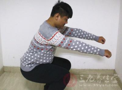 保持好身體重心然后再把兩只手伸直舉在身體正前方,這個動作有助于拉伸身體兩側的肌肉線條,也可以矯正下蹲后重心不穩的問題,不至于下蹲后向后跌倒。