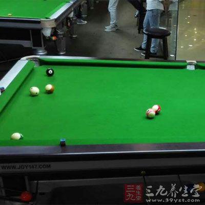 5、擊打后有任意花色球飛離臺面。飛離的花色算進,對方自由球。黑8飛離臺面判輸。