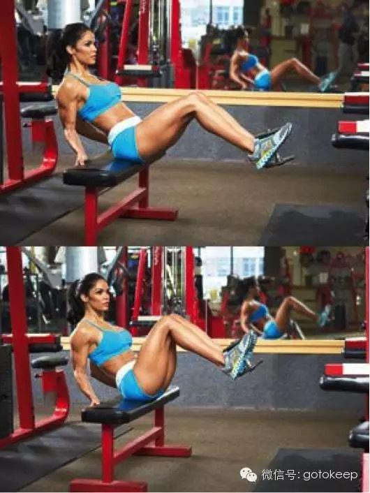 4. 如果感覺啞鈴夾在兩腳尖費力,一開始也可以加到膝蓋之間,或者完全無負重,然后逐漸過渡到負重。