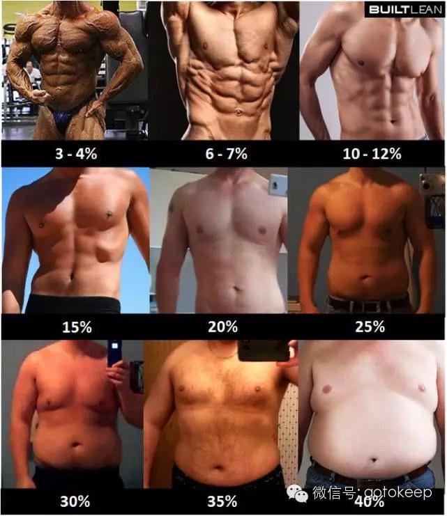 這是最常見的問題,如果男性的皮脂在15%、女性在20% 以上(具體皮脂率可參考以下圖片),那你練得再多也只能看出一個輪廓。