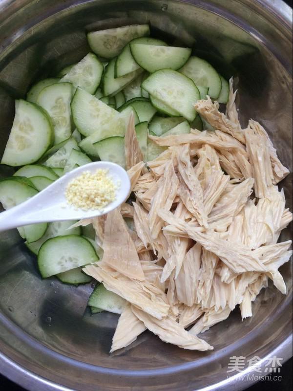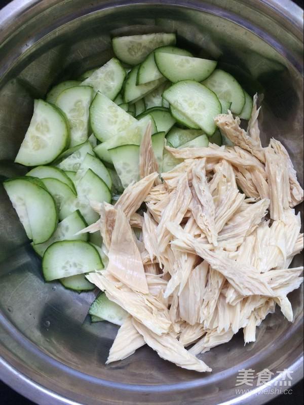 將焯好的腐竹撈出,放入涼水中過一下涼水。