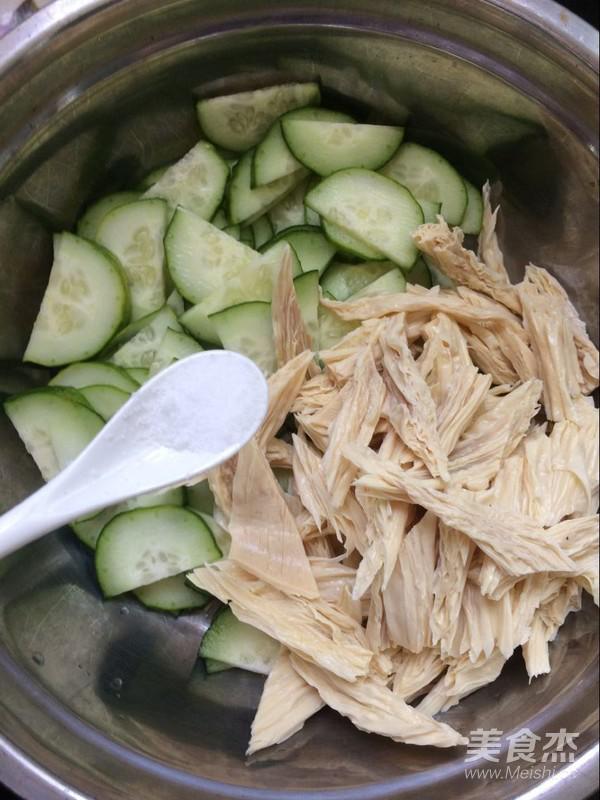 將泡發好的的腐竹撈出瀝干水,切斜段。