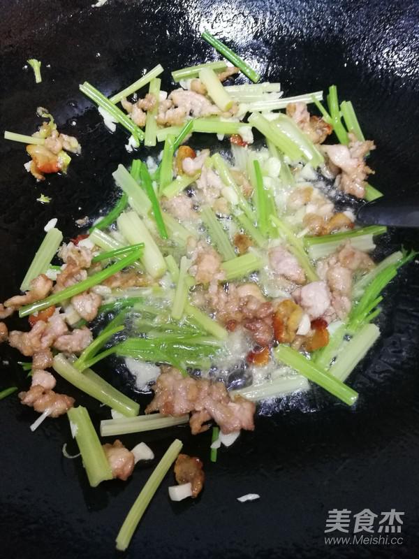 8.芹菜入鍋翻炒幾下。