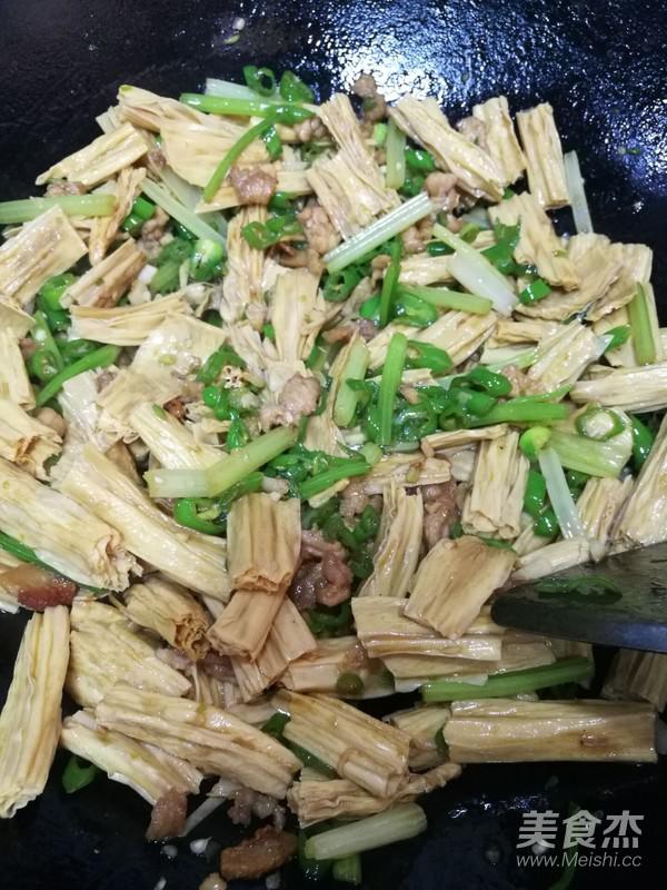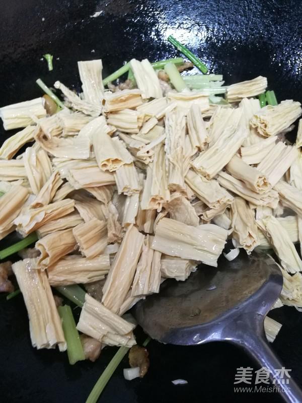 9.加入腐竹翻炒,大火勤翻。