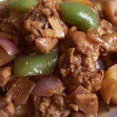 放入彩椒洋蔥 翻炒均勻 蓋鍋蓋大火收汁 出鍋前三分鐘放鹽 味精 十三香 翻炒均勻 出鍋即可