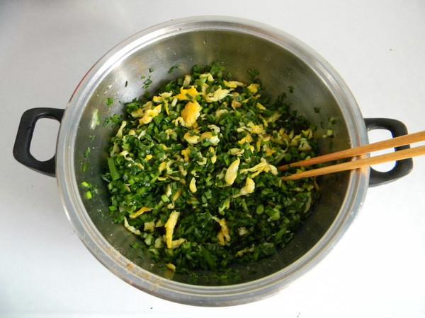 先用油拌餡,在放鹽,這樣韭菜不容易被腌出水來。
