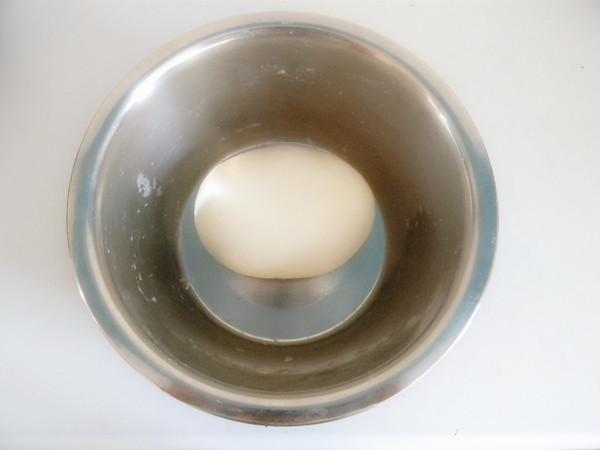 4.在用溫水把剩余的另一半面粉和成白面團,液一起餳著